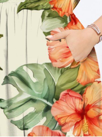 Plus Size Floral Tropical Leaves Print Hawaii Split Pocket A Line Midi Dress - Multi-a - 5x