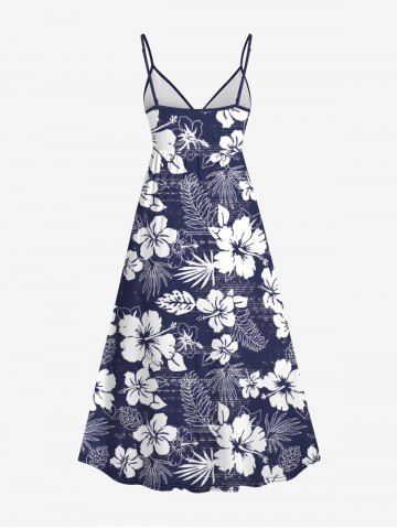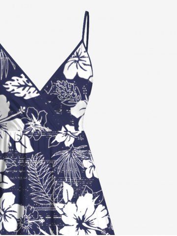 Plus Size Floral Tropical Leaves Print Hawaii Surplice A Line Cami Dress - Blue - 5x