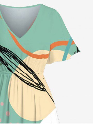 Plus Size Flower Tropical Leaf Sun Colorblock Print Hawaii Split Pocket A Line Midi Dress - Green - 2x