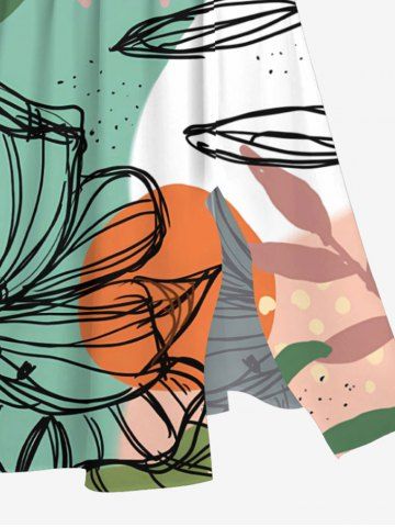 Graphic Dresses > Plus Size Flower Tropical Leaf Sun Colorblock Print Hawaii Split Pocket A Line Midi Dress