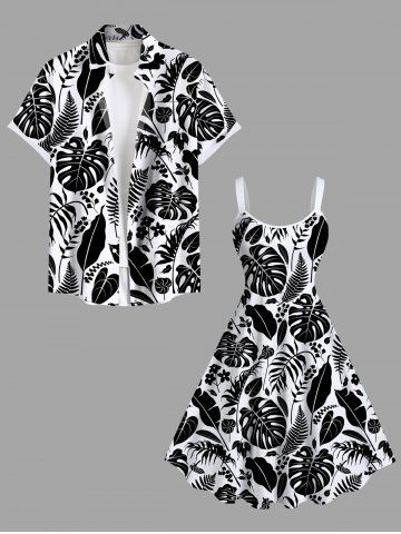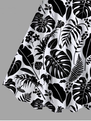 Plus Size Floral Tropical Leaves Two Tone Print Hawaii A Line Tank Dress - Black - L