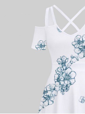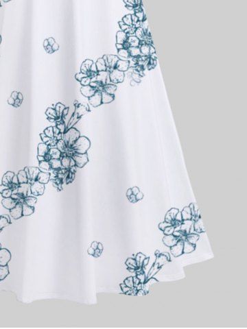 Plus Size Floral Two Tone Print Hawaii Crisscross A Line Maxi Dress - White - S