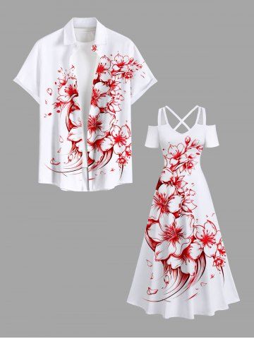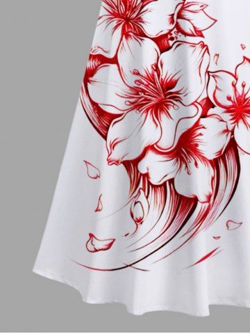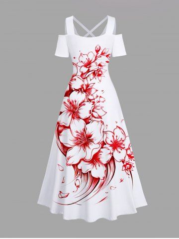 Plus Size Floral Two Tone Print Hawaii Crisscross A Line Maxi Dress - White - 3x