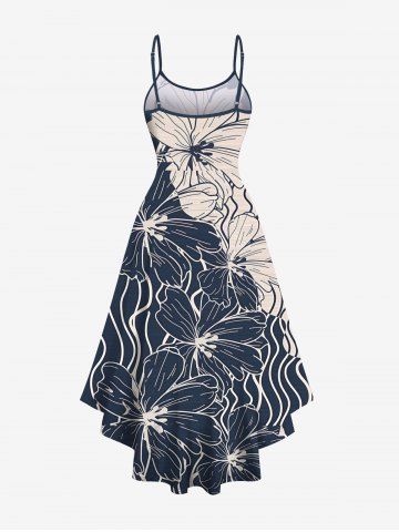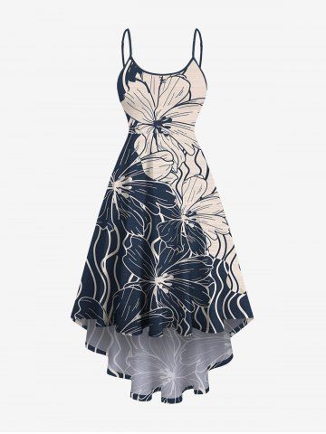 Graphic Dresses > Plus Size Floral Wave Line Two Tone Print Hawaii High Low Asymmetric Cami Dress