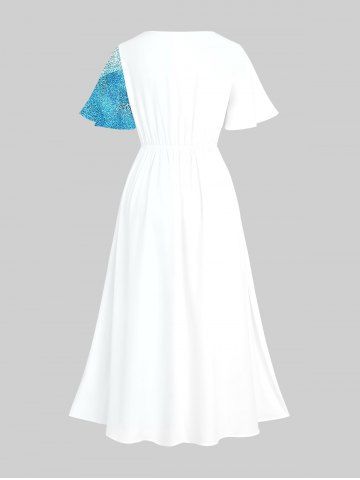 Plus Size Flow Quicksand Print Hawaii Split Pocket A Line Midi Dress - Multi-a - 6x