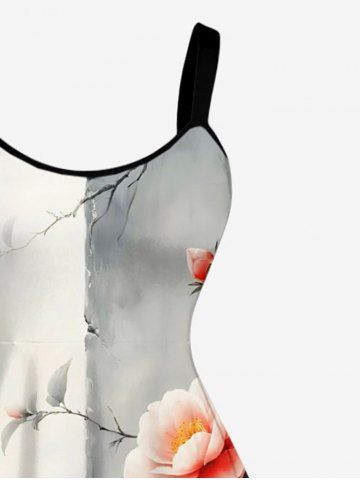 Graphic Dresses > Plus Size Flower Branch Ink Painting Print Hawaii A Line Dress