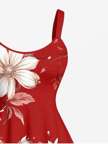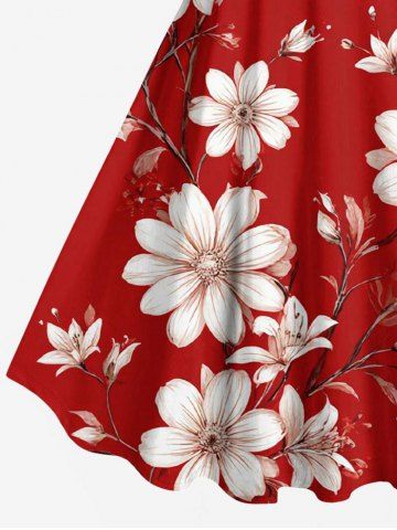 Plus Size Flower Branch Print Hawaii A Line Dress - Red - 6x