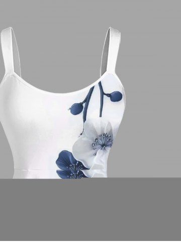 Plus Size Flower Branch Print Hawaii A Line Dress - White - M