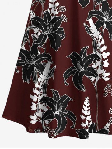 Plus Size Flower Branch Print Hawaii Cold Shoulder Crisscross A Line Maxi Dress - Red Wine - 6x