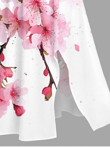 Plus Size Flower Branch Print Split Hawaii Midi Dress - Pink - 4x
