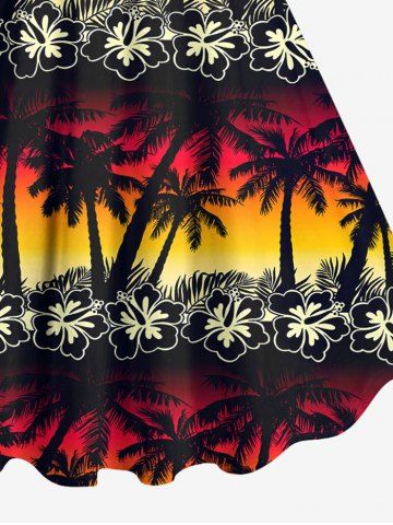Hawaii Plus Size Flower Coconut Tree Leaf Ombre Colorblock Sky Print Tank Dress - Black - 6x