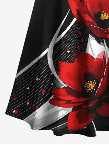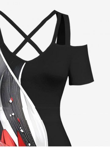 Plus Size Flower Curve Print Cold Shoulder Crisscross Strappy A Line Maxi Dress - Black - L