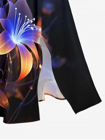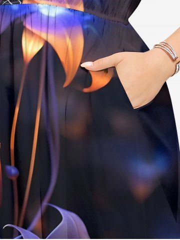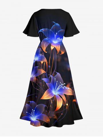 Plus Size Flower Glitter 3D Print Surplice Hawaii Midi Dress - Black - S