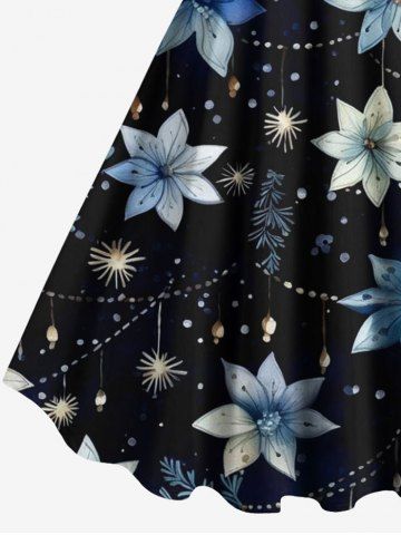 Plus Size Flower Insect Print Hawaii A Line Dress - Black - S