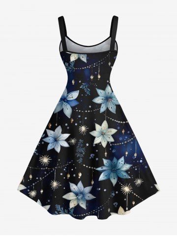 Plus Size Flower Insect Print Hawaii A Line Dress - Black - L