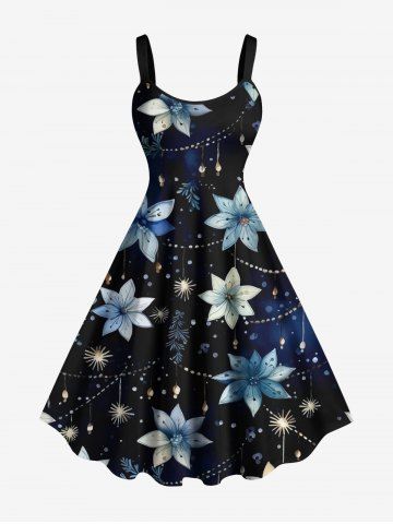 Plus Size Flower Insect Print Hawaii A Line Dress - Black - 3x