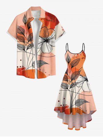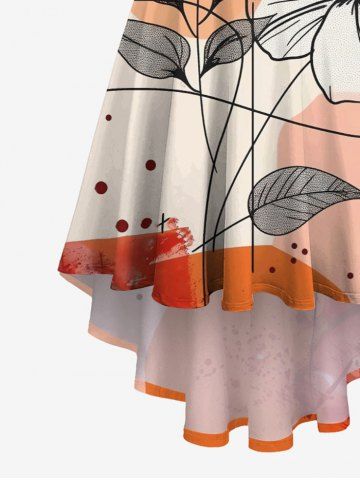 Graphic Dresses > Plus Size Flower Leaf Branch Colorblock Print Hawaii High Low Asymmetric Cami Dress