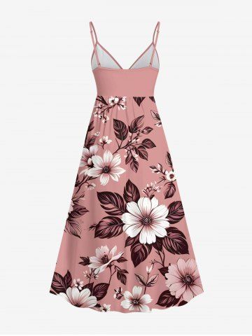 Plus Size Flower Leaf Branch Print Hawaii Surplice A Line Cami Dress - Light Pink - 2x