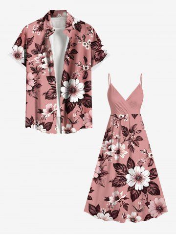 Plus Size Flower Leaf Branch Print Hawaii Surplice A Line Cami Dress - Light Pink - 6x