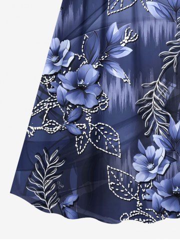 Plus Size Flower Leaf Branch Waterwave Print Hawaii Surplice A Line Cami Dress - Blue - Xs