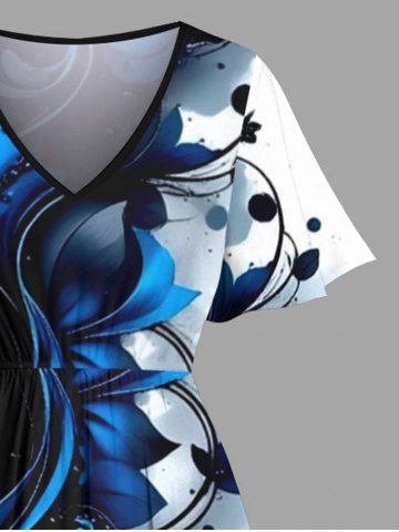 Plus Size Flower Leaf Contrast Print Hawaii Split Pocket A Line Midi Dress - Navy Blue - 4x