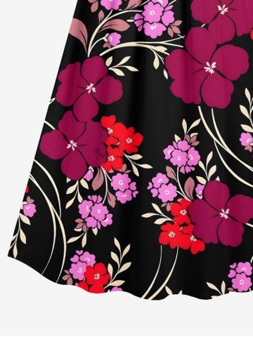 Plus Size Flower Leaf Curve Branch Print Hawaii Surplice A Line Cami Dress - Red - 4x