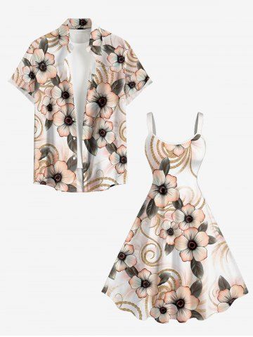 Graphic Dresses > Plus Size Flower Leaf Curve Print Hawaii A Line Dress