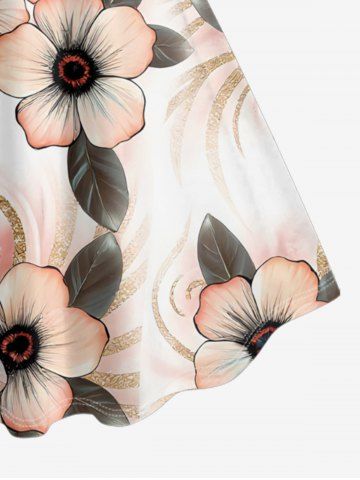 Plus Size Flower Leaf Curve Print Hawaii A Line Dress - Rose - M