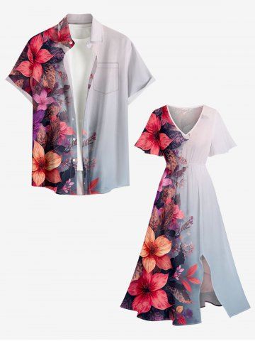 Graphic Dresses > Plus Size Flower Leaf Ombre Print Hawaii Split Pocket A Line Midi Dress