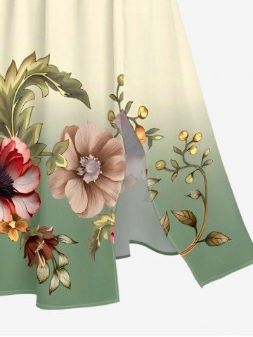 Graphic Dresses > Plus Size Flower Leaf Ombre Print Hawaii Split Pocket A Line Midi Dress