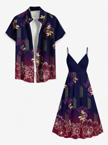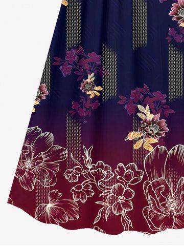 Graphic Dresses > Plus Size Flower Leaf Ombre Print Hawaii Surplice A Line Cami Dress