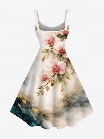 Plus Size Flower Leaf Ombre Water Ripple Print Hawaii A Line Dress - Light Coffee - 2x