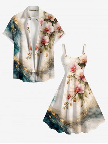 Graphic Dresses > Plus Size Flower Leaf Ombre Water Ripple Print Hawaii A Line Dress