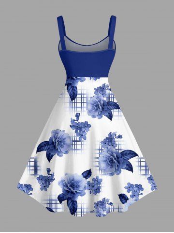 Plus Size Flower Leaf Plaid Print Hawaii A Line Dress - Blue - Xxs