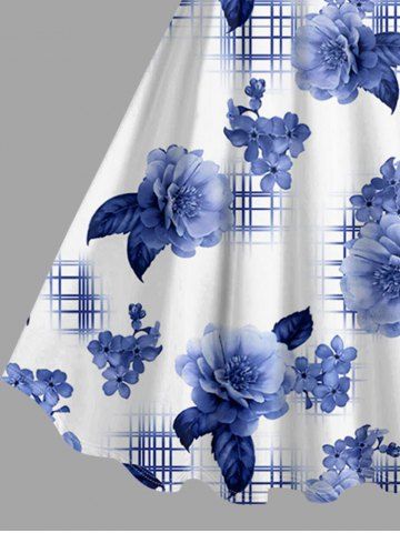 Graphic Dresses > Plus Size Flower Leaf Plaid Print Hawaii A Line Dress