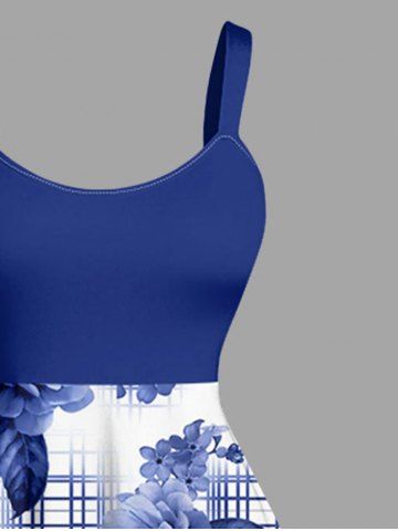 Plus Size Flower Leaf Plaid Print Hawaii A Line Dress - Blue - 6x