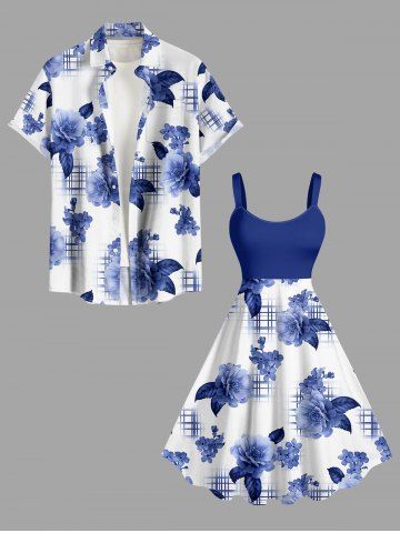 Graphic Dresses > Plus Size Flower Leaf Plaid Print Hawaii A Line Dress
