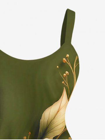 Plus Size Flower Leaf Print Hawaii A Line Dress - Green - 1x