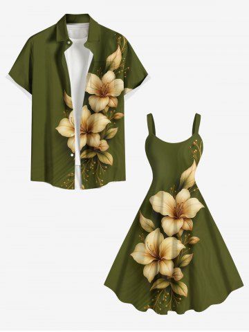 Graphic Dresses > Plus Size Flower Leaf Print Hawaii A Line Dress