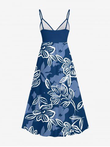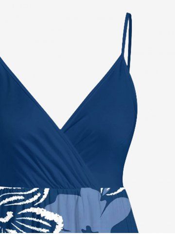 Plus Size Flower Leaf Print Hawaii Ombre Surplice A Line Cami Dress - Navy Blue - 1x