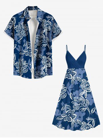 Plus Size Flower Leaf Print Hawaii Ombre Surplice A Line Cami Dress - Navy Blue - 4x