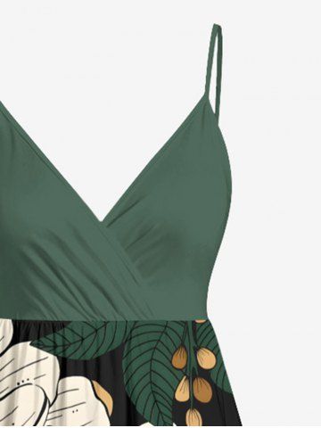 Plus Size Flower Leaf Print Hawaii Surplice A Line Cami Dress - Green - 6x