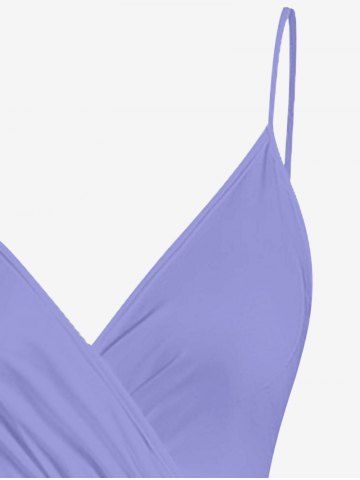 Plus Size Flower Leaf Print Hawaii Surplice A Line Cami Dress - Purple - 4x