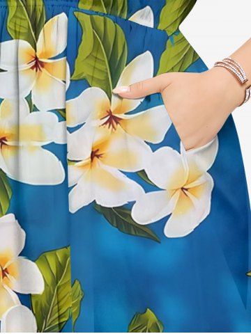Graphic Dresses > Plus Size Flower Leaf Print Split Hawaii Midi Dress
