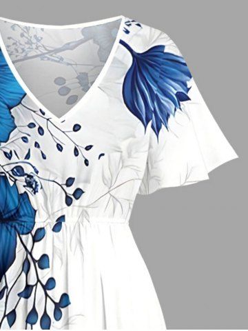 Plus Size Flower Leaf Print Split Hawaii Midi Dress - Blue - 6x