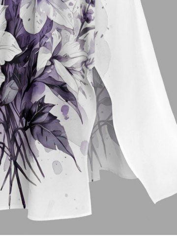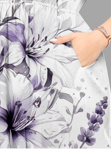 Plus Size Flower Leaf Print Split Hawaii Midi Dress - Milk White - S