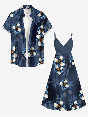 Graphic Dresses > Plus Size Flower Leaf Print Surplice Hawaii Cami Dress