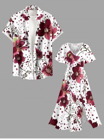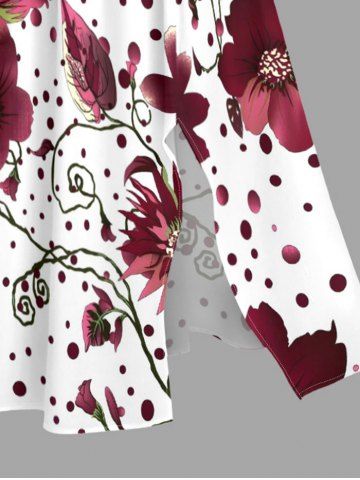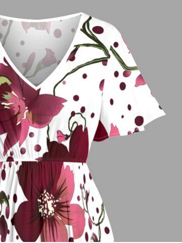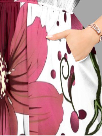 Plus Size Flower Leaf Spotted Print Hawaii Split Pocket A Line Midi Dress - White - M
