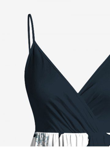 Plus Size Flower Leaf Tropical Print Surplice Hawaii Cami Dress - Black - 2x