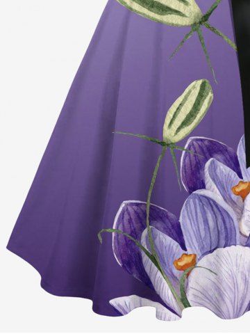 Plus Size Flower Ombre Print Hawaii Button A Line Dress with Removable Belt - Purple - L